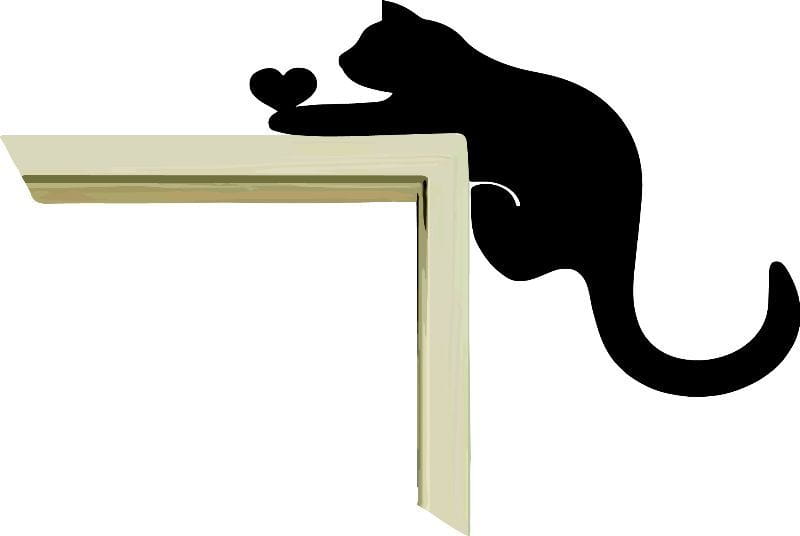 Dekor - wiszący na ramie kot z serduszkiem.