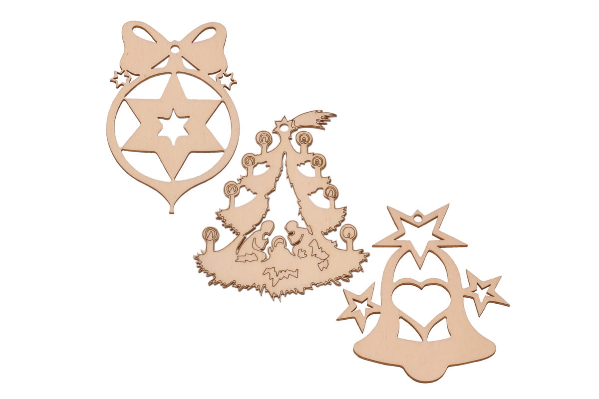 Ażurowa bombki ze sklejki - ozdoby na choinkę - różne świąteczne wzory - mix