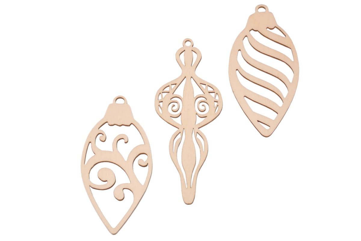 Oryginalne ażurowe podłużne bombki ze sklejki - ozdoby na choinkę - zestaw