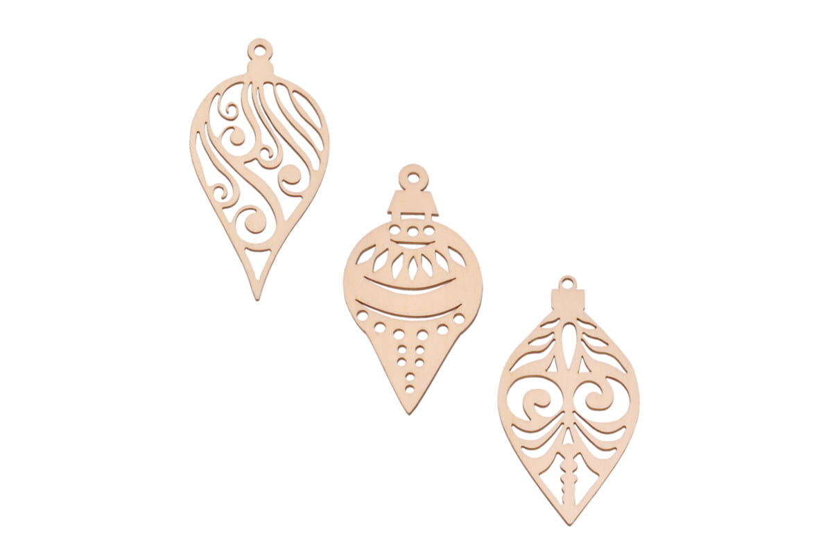 Oryginalne ażurowe podłużne bombki ze sklejki - ozdoby na choinkę - zestaw