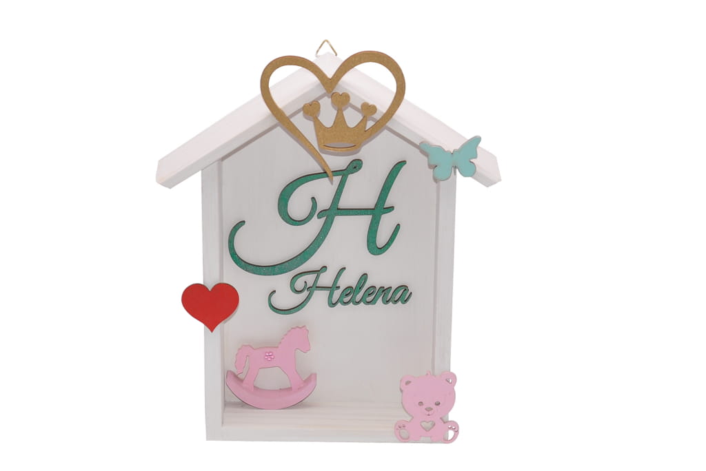 - dekory - serce, korona, motylek i miś oraz napis - materiał sklejka grubości 3 mm wycinane wysokiej klasy lakierem