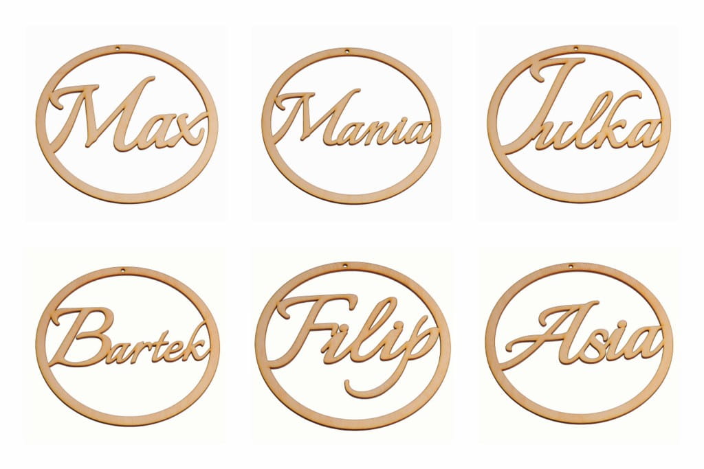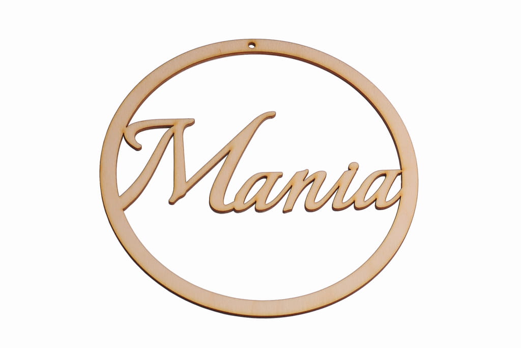 Obręcz ze sklejki z przykładowym imieniem Mania :) - przy zamówieniu podaj imię osoby, dla której zrobimy dekor.
