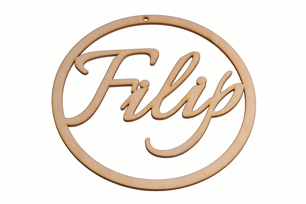 Obręcz ze sklejki z przykładowym imieniem Filip :) - przy zamówieniu podaj imię osoby, dla której zrobimy dekor.