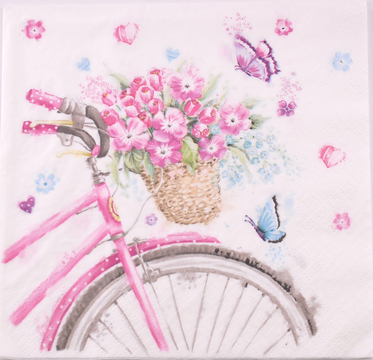 Serwetka do DECOUPAGE - motyw w stylu prowansalskim - rower z koszykiem pełnym kwiatów -1 sztuka